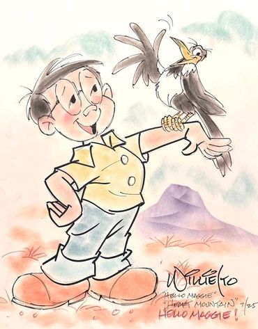After the war, Willie went on to an illustrious career as an animator and cartoonist for companies such as Disney, where he was one of the lead artists for the 1955 classic Lady and the Tramp, Warner Brothers, and Hanna-Barbera.